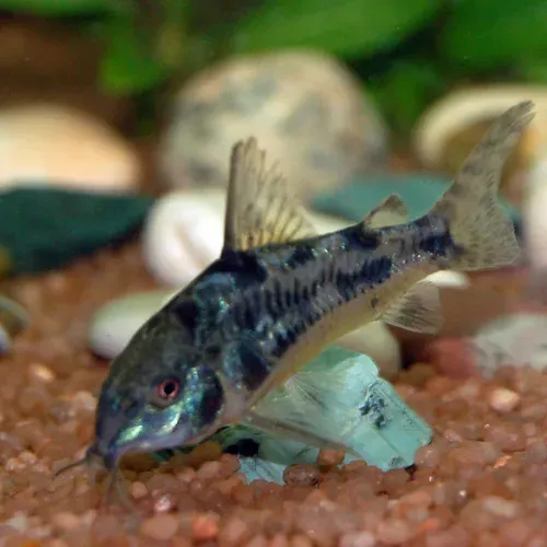 Pez de fondo que ayuda a mantener el acuario limpio. Pacífico y resistente, excelente compañero para acuarios comunitarios.