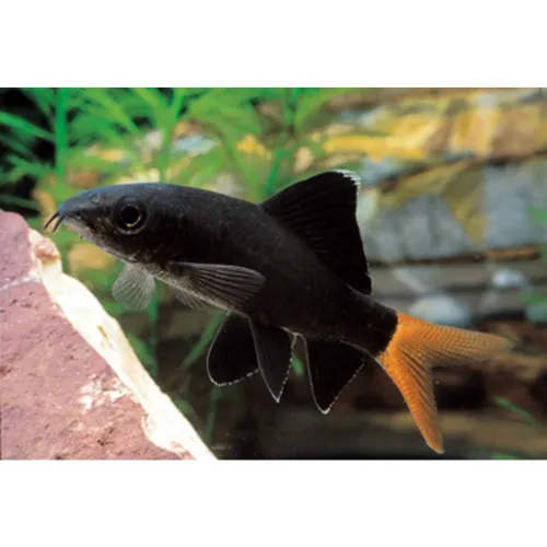 Elegante y territorial, destaca por su cuerpo oscuro y su brillante cola roja.